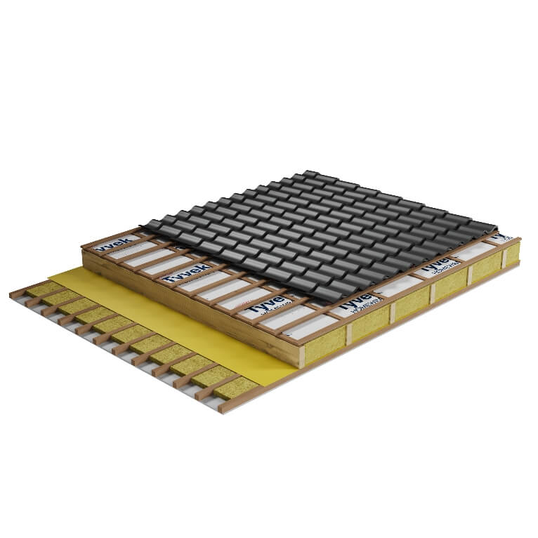 - łaty/stelaż pod instalację i płyty/deski oraz dodatkowe ocieplenie wełna mineralna dostosowana do grubości stelażu o przenikalności cieplnej λ=0,035W/m2K