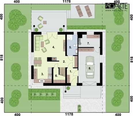The project of a house with an attic Trypolis 2 is a spacious project for a family with a 2+2 model. The house has a detached garage, 2 bathrooms, a living room with a kitchenette, a utility room and 3 bedrooms.