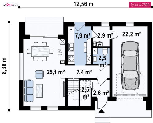 Z469 is a proposal for a simple, contemporary house with a garage. The uncomplicated construction and gabled roof make it a cheap and easy to build investment.