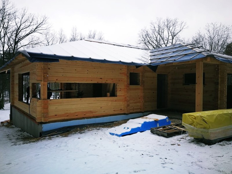 Dom z bali prostokątnych o wymiarach 24 x 20