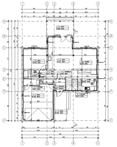 Projetk Bartek B217 posiada salon (z antresolą), jadalnię, pokój gościnny, garaż na 2 samochody, spiżarnie, schowek, sypialnie z własną lazienką i garderobą, 3 pokoje, 2 lazienki, pralnie, kotłownię, wiatrołap oraz 2 tarasy - wejściowy oraz od podwórza.