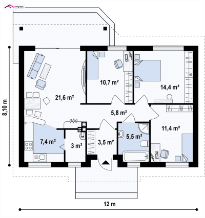 Projekt Z7D är ett litet och billigt hus i en våning med ett sadeltak. En enkel och modern konstruktion som gör det möjligt att bygga snabbt och ekonomiskt. Att berika höjden med träelement ger den ytterligare charm och berikar därmed det estetiska värdet.