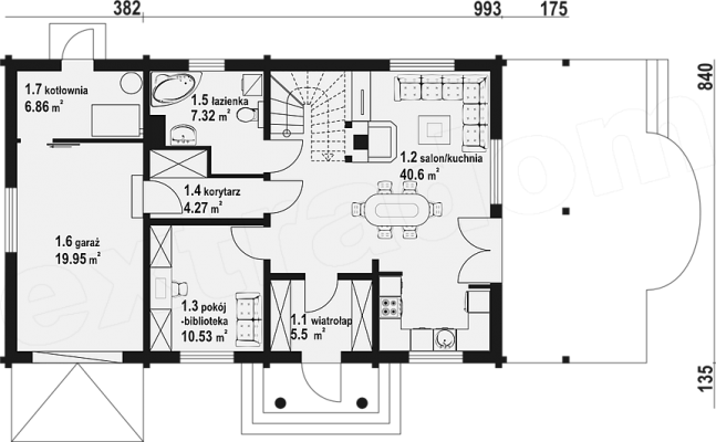 Huset Milicz dw är ett idealiskt förslag för personer med en medelstor tomt. Huset kännetecknas av en enkel konstruktion, så det kommer att se bra ut oavsett omgivningen. Projektet hör till kategorin hus med en nock parallellt med vägen, vilket är viktigt med tanke på de krav som anges i områdesplanen. Projektet har utformats för tomter som gör det möjligt att placera huset som ett fristående hus. I projektet ingår ett enkelt garage i byggnadslinjen. Det är också ett intressant förslag för dem som vill ha ett hus med sadeltak, och det är ekonomiskt och tar inte mycket tid att göra spantramen och dess täckning. Projekt Milicz dw är ett envåningshus med en användbar vind, vilket gör att bostads- och sovutrymmena är tydligt åtskilda.