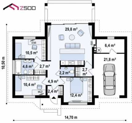 Yttre mått: 14,7 x 10,5 x 6,12 m.